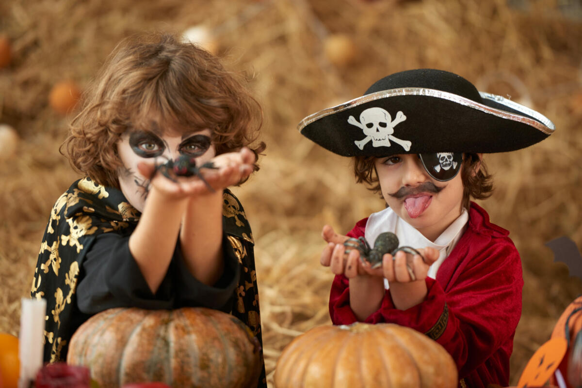 2 geschminkte kinderpiraten klaar voor hun piratenavontuur 2 geschminkte kinderpiraten klaar voor hun piratenavontuur